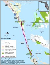 | Limits: | The Barrier Island PD&E Study extends along State Road (S.R.)789 from north of Longboat Pass Bridge to S.R. 64 (approximately 3.8 miles) and Gulf Drive from S.R. 64 to White Avenue/85th Street (approximately 2.2 miles). The total project length is approximately six miles. |
